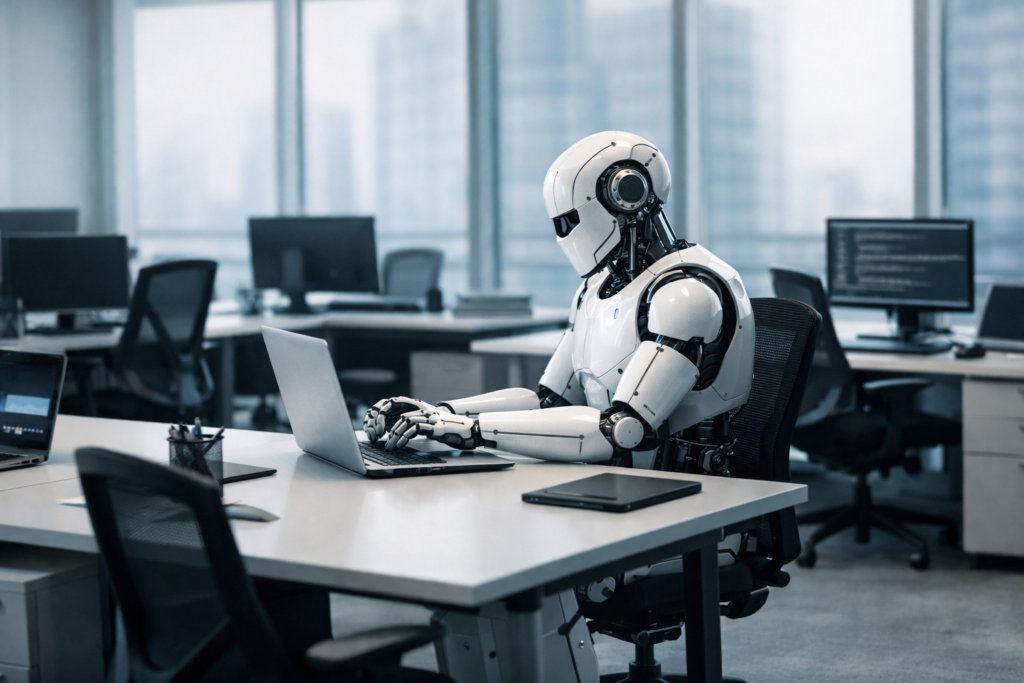 Existe uma cena comum no mundo corporativo moderno. Pessoas bem vestidas, com bons cursos, falando de inovação enquanto passam o dia inteiro alimentando sistemas, copiando dados, ajustando apresentações, respondendo e-mails que poderiam ser respostas automáticas.