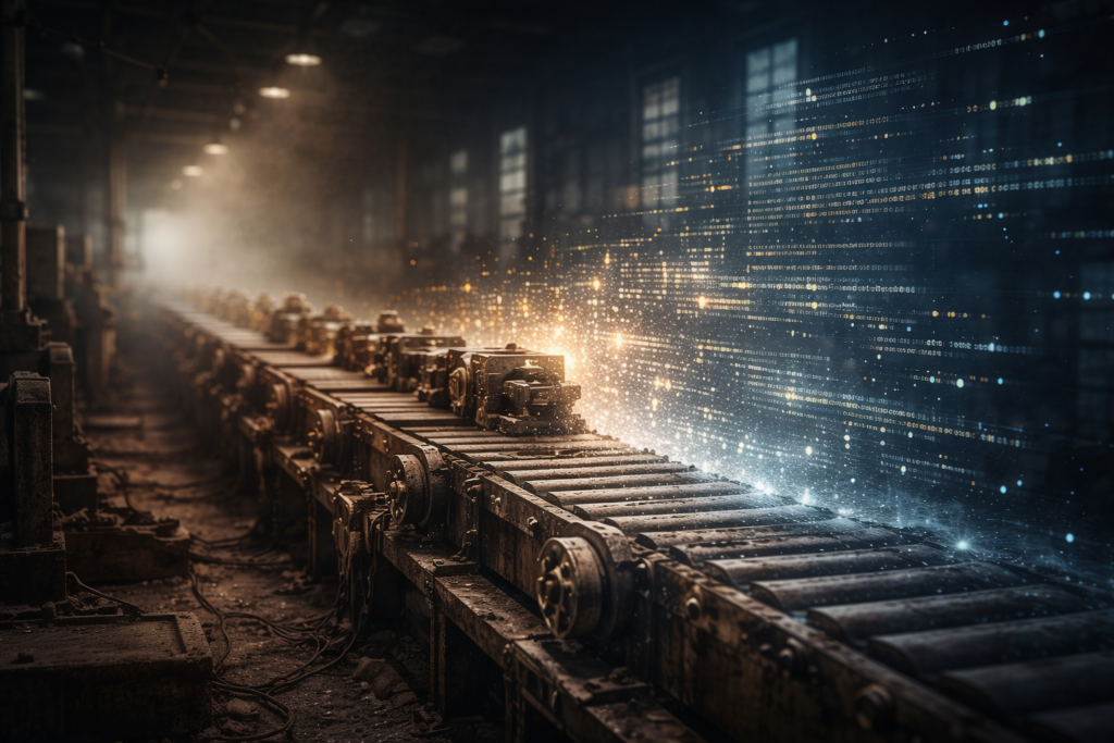 Quando as fábricas surgiram, o erro mais comum foi achar que elas substituiriam o ser humano por completo. Não substituíram. Elas reorganizaram o humano ao redor da máquina.
